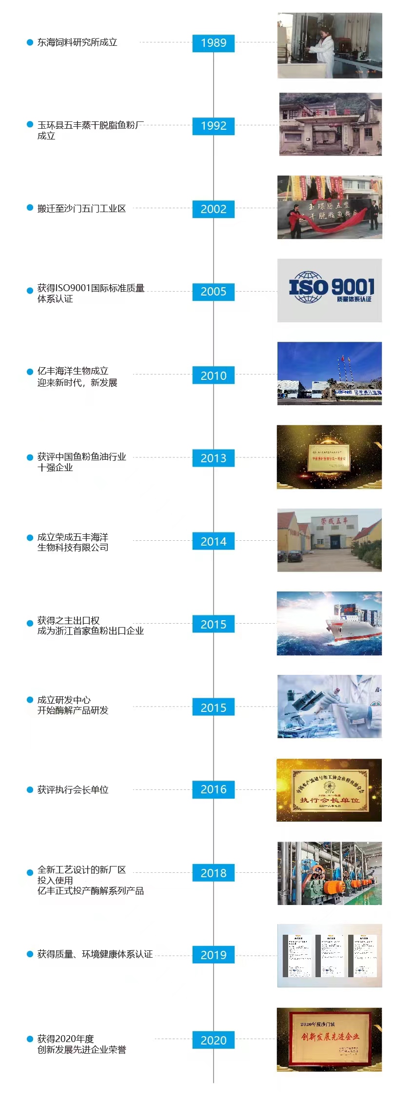 浙江亿丰海洋生物制品有限公司系由玉环市五丰蒸干脱脂鱼粉厂于 2010年投资创办的,是一家股份制海洋生物高新技术企业。